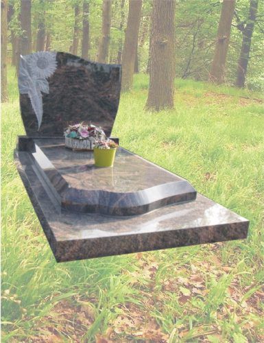 Geheel van himalaya graniet, uitgehakte zonnebloem in letterplaat