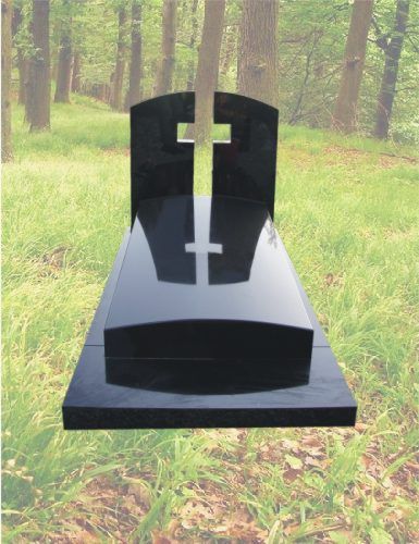 Geheel in indian black graniet, de letterplaat bestaat uit 2 delen met een uitgezaagde kruis