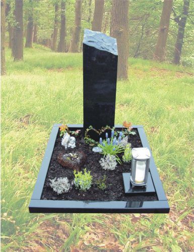Het grafmonument bestaat uit een omranding en een zuil van indian black graniet, de bovenkant van de zuil is schuin afgehakt.