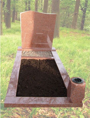 Grafsteen geheel van imperial red graniet, binnenruimte gevuld met potgrond en bijpassend split.