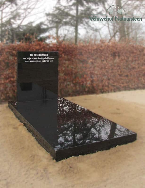 Dit grafmonument is gemaakt van indian black graniet volledig gepolijst. Letterplaat en afdekplaat beide in rechte vormen.