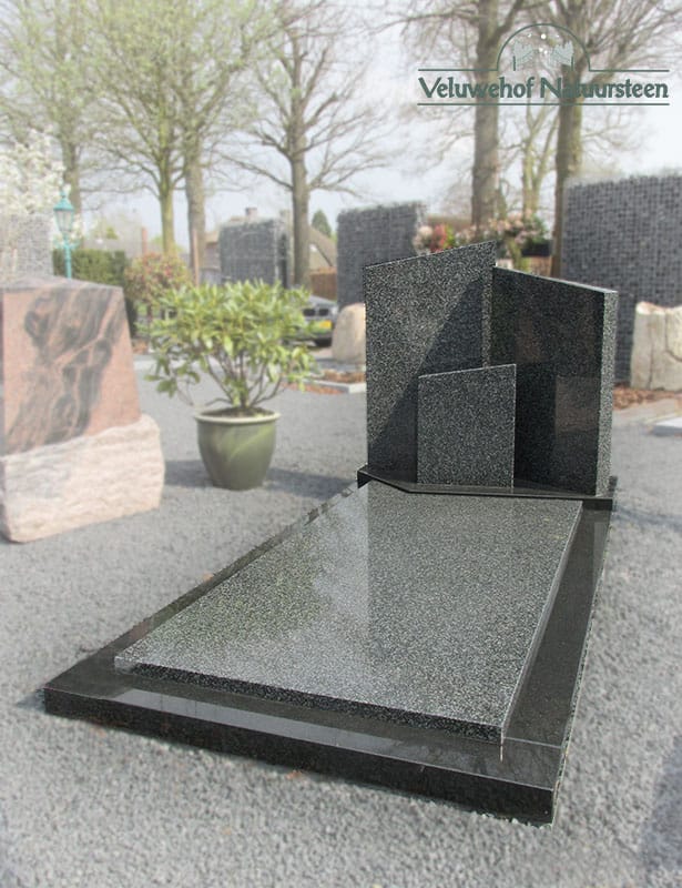Grafmonument bestaande uit een zwarte granieten onderplaat met granieten dekplaat en hierop 3 granieten (Impala) zuilen in verschillende afmetingen.