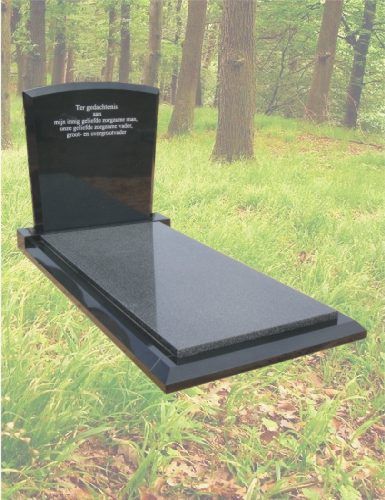 Grafmonument model toog, omranding en letterplaat uitgevoerd in zwart graniet, de afdekplaat is van impala graniet.