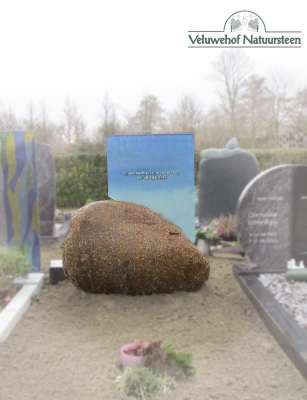 Grafmonument bestaat uit een grote Deense zwerfkei met hierop een glasplaat met fotoprint erop.