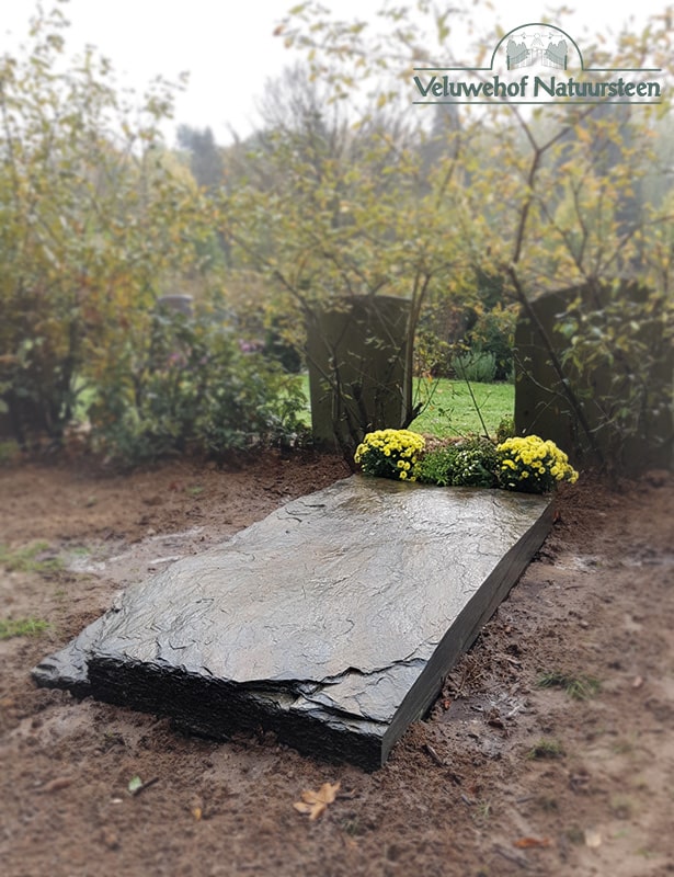 De grafzerk is gemaakt van een grote ruwe liggende Carpathia leisteen.